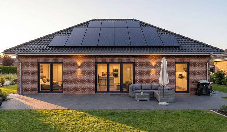 Unsere drei Grundrisse bieten optimalen Komfort und sind ideal für ebenerdiges, barrierefreies Leben. Nutzen Sie die Energie vom Dach mit einem Speicher für eine nachhaltige Heiztechnik.
